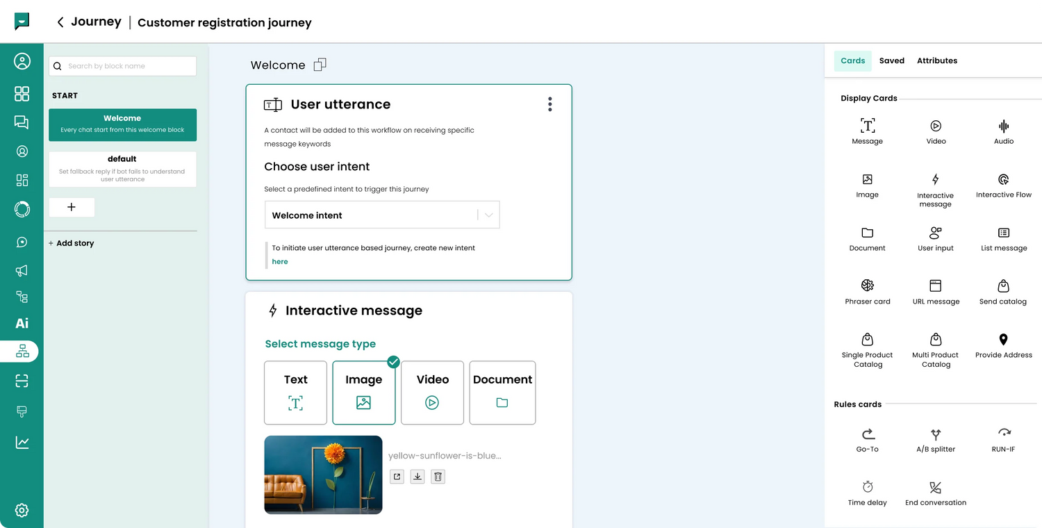 Our Story Builder empowers sophisticated conversational design. With drag and drop, visual chatbot builder interface construct predefined conversation sequences and run business logics instantly